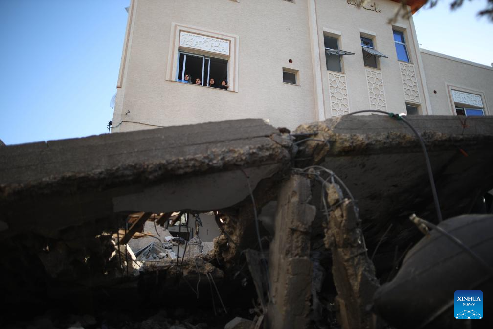 People look out from a window after an Israeli attack in al-Nuseirat refugee camp, central Gaza Strip, on Oct. 28, 2024. The Palestinian death toll from ongoing Israeli attacks on the Gaza Strip has surpassed 43,000, Gaza-based health authorities said in a statement on Monday. (Photo by Marwan Dawood/Xinhua)