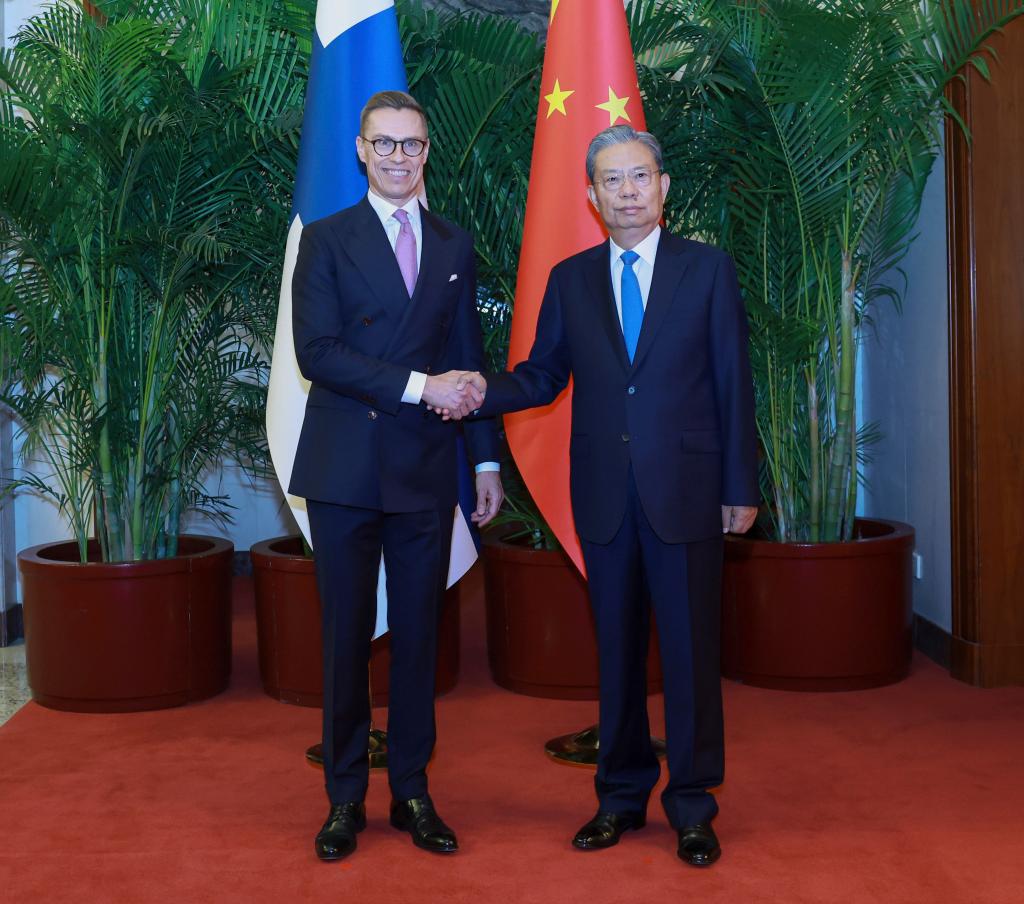 Zhao, chairman of the Standing Committee of the National People's Congress (NPC), said that since the establishment of diplomatic ties 74 years ago, China-Finland relations have maintained a sound momentum of development and become a model of peaceful coexistence and friendly exchanges between countries of different sizes, cultures and systems.