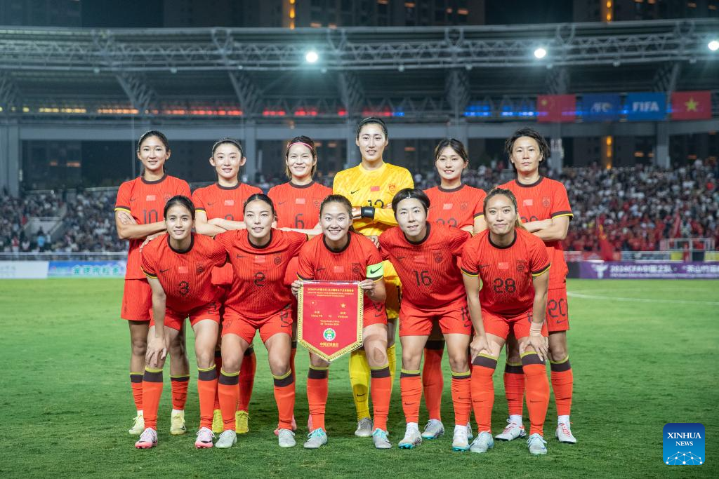 Players of China pose for a group photo before the match between China and Vietnam at 2024 CFA Team China International Women's Football Tournament Yongchuan in Chongqing, southwest China, Oct. 29, 2024. (Xinhua/Huang Wei)