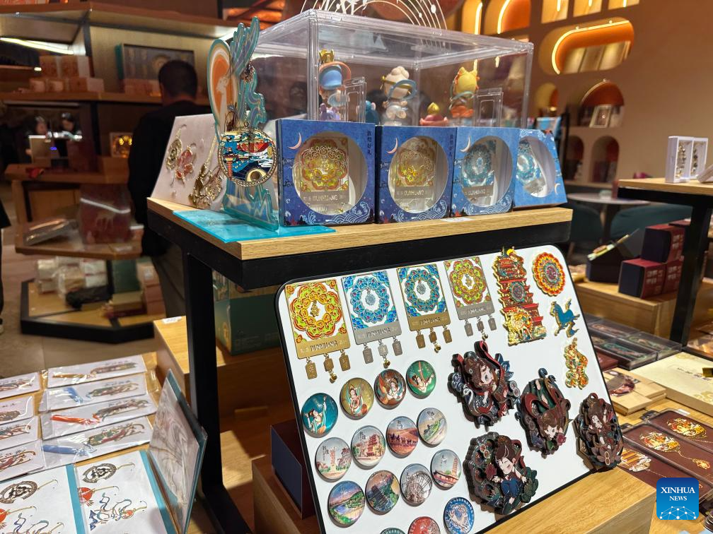 Creative cultural products are seen at a gift shop in Dunhuang, northwest China's Gansu Province, Sept. 21, 2024. (Xinhua/Zhang Wenjing)