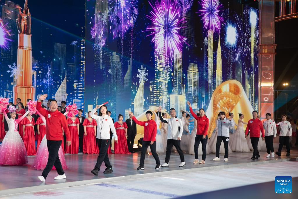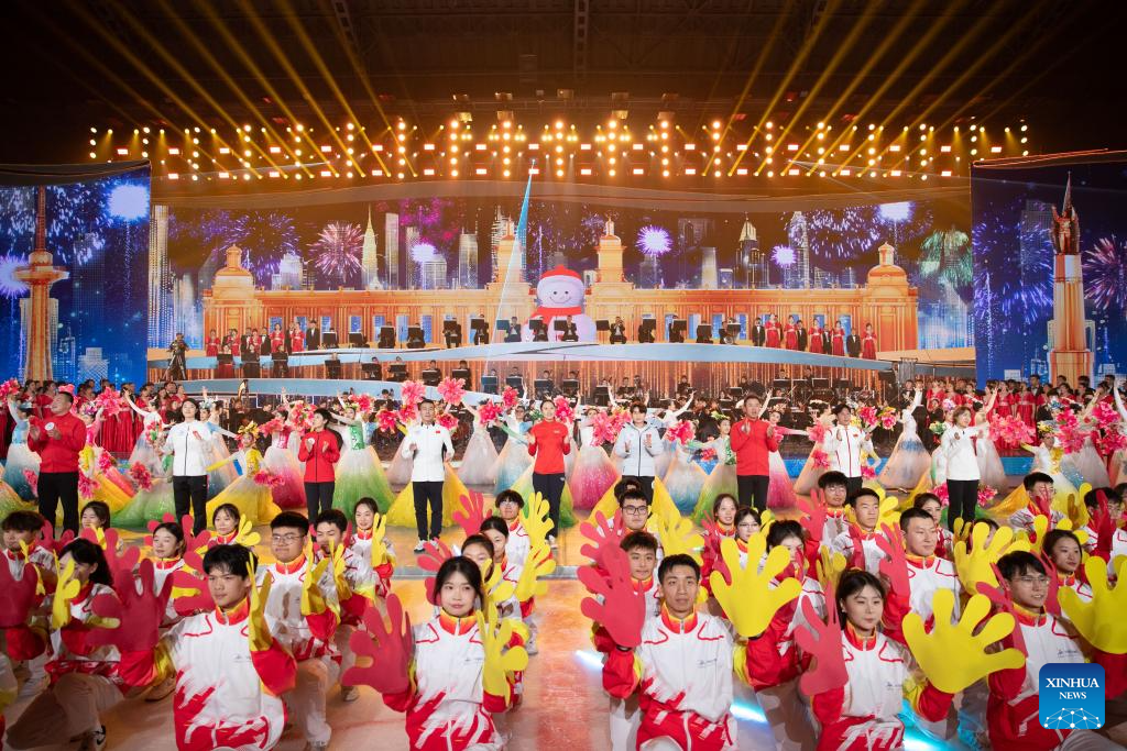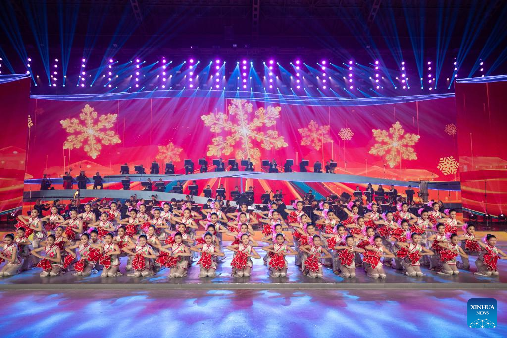 Artists perform during a ceremony celebrating the 100-day countdown to the 9th Asian Winter Games Harbin 2025 in Harbin, northeast China's Heilongjiang Province, Oct. 30, 2024. (Xinhua/Zhang Tao)