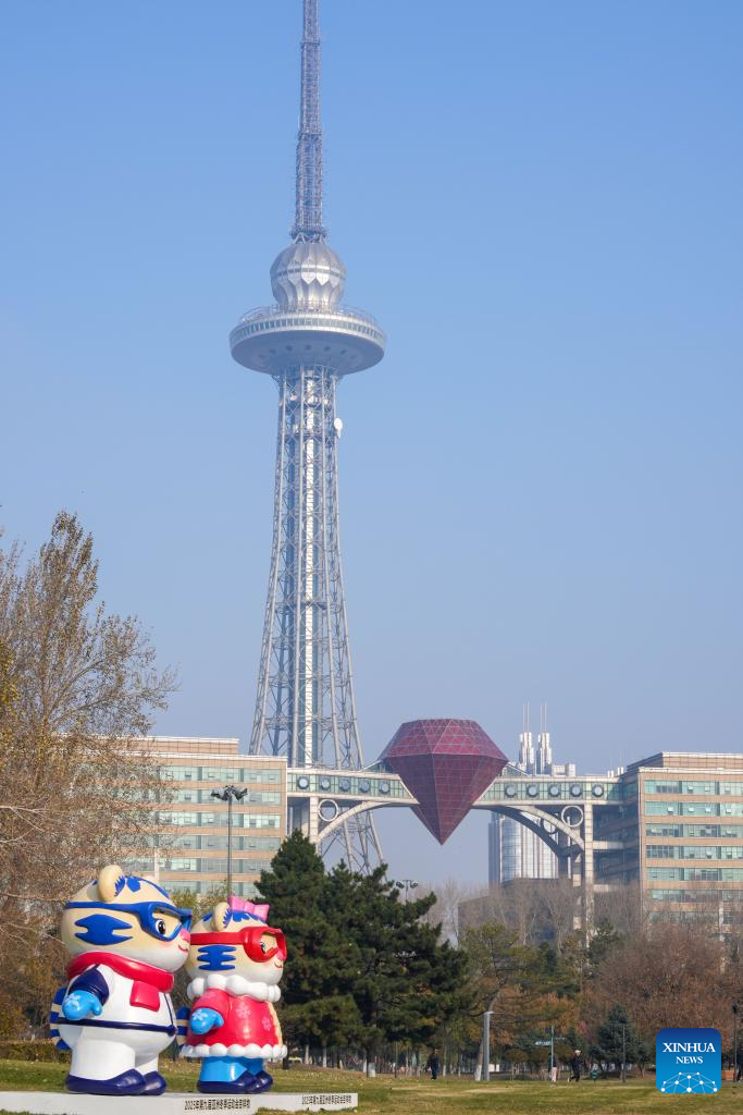 The 9th Asian Winter Games mascots are seen in Harbin, northeast China's Heilongjiang Province, Oct. 30, 2024. The countdown to the 9th Asian Winter Games Harbin 2025 hit the 100-day mark on Oct. 30, 2024. (Xinhua/Wang Jianwei)