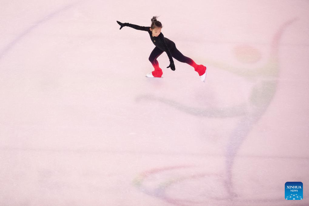 A citizen skates in a mall in Harbin, northeast China's Heilongjiang Province, Oct. 27, 2024. The countdown to the 9th Asian Winter Games Harbin 2025 hit the 100-day mark on Oct. 30, 2024. (Xinhua/Zhang Tao)