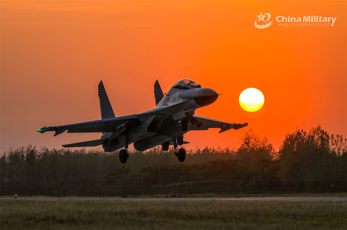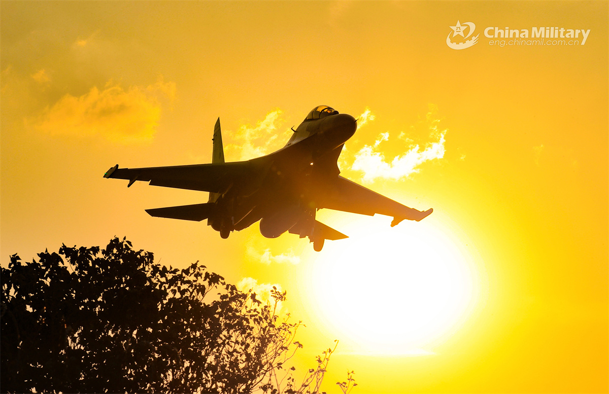 A fighter jet attached to a brigade under the Chinese PLA Air Force takes off for a flight training exercise aiming to hone the pilots' capabilities on September 29, 2024. (eng.chinamil.com.cn/Photo by Cui Baoliang)