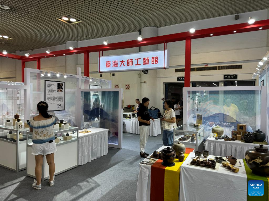 People visit a crafts exhibition during the 15th Cross-Strait (Xiamen) Cultural Industries Fair in Xiamen, southeast China's Fujian Province, Oct. 31, 2024. The fair running from Oct. 31 to Nov. 3 kicked off in Xiamen on Thursday. (Xinhua/Yan Zhihong)