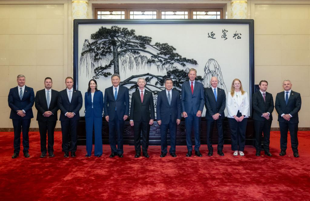 Chinese Vice Premier He Lifeng, also a member of the Political Bureau of the Communist Party of China Central Committee, meets with an Australian high-level business delegation at the Great Hall of the People in Beijing, capital of China, Nov. 1, 2024. (Xinhua/Zhai Jianlan)