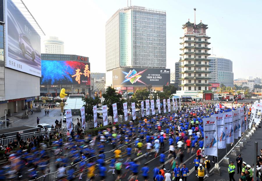 BEIJING, Nov. 3 (Xinhua) -- Streets across China were alive with energy on Sunday, as thousands of runners jogged, smiled and celebrated in what has been dubbed a "super marathon weekend".