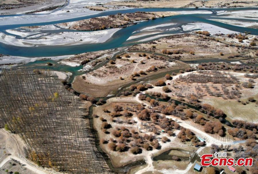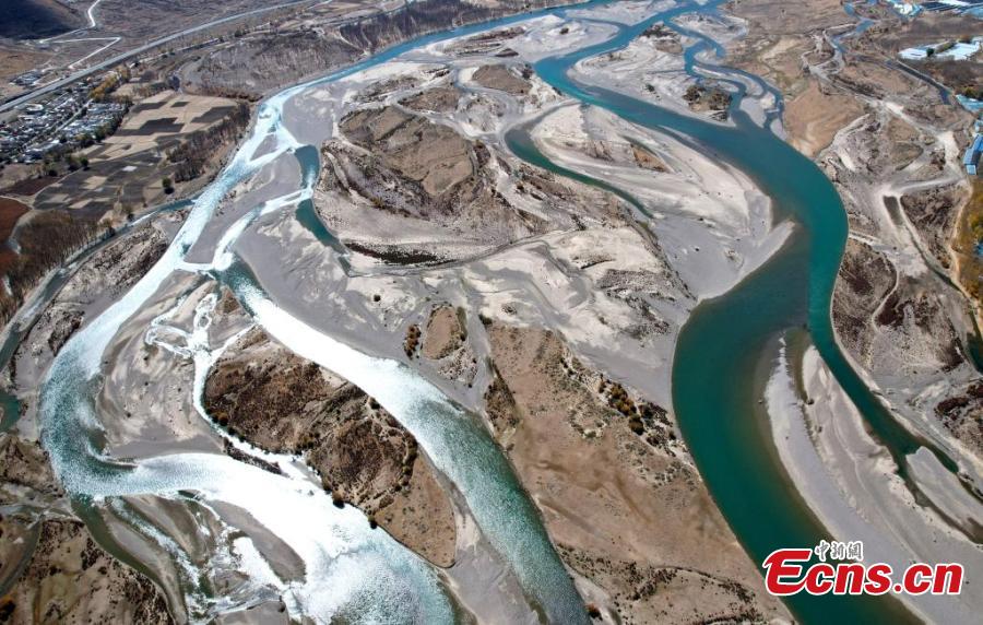 Magnificent landscape of long stretches of the Lhasa River branches in southwest China's Xizang Autonomous Region, Nov. 3, 2024. (Photo: China News Service/Li Lin)