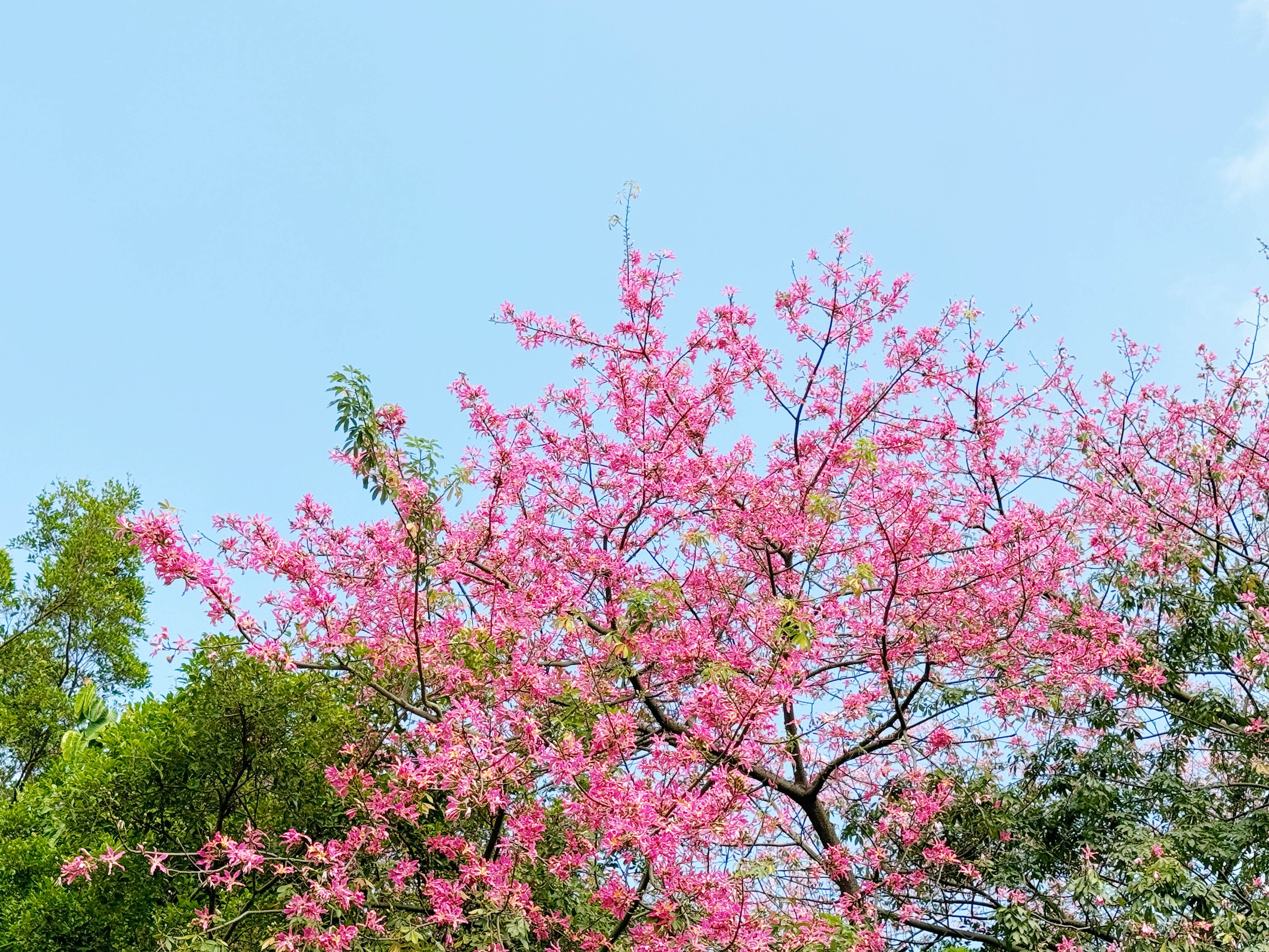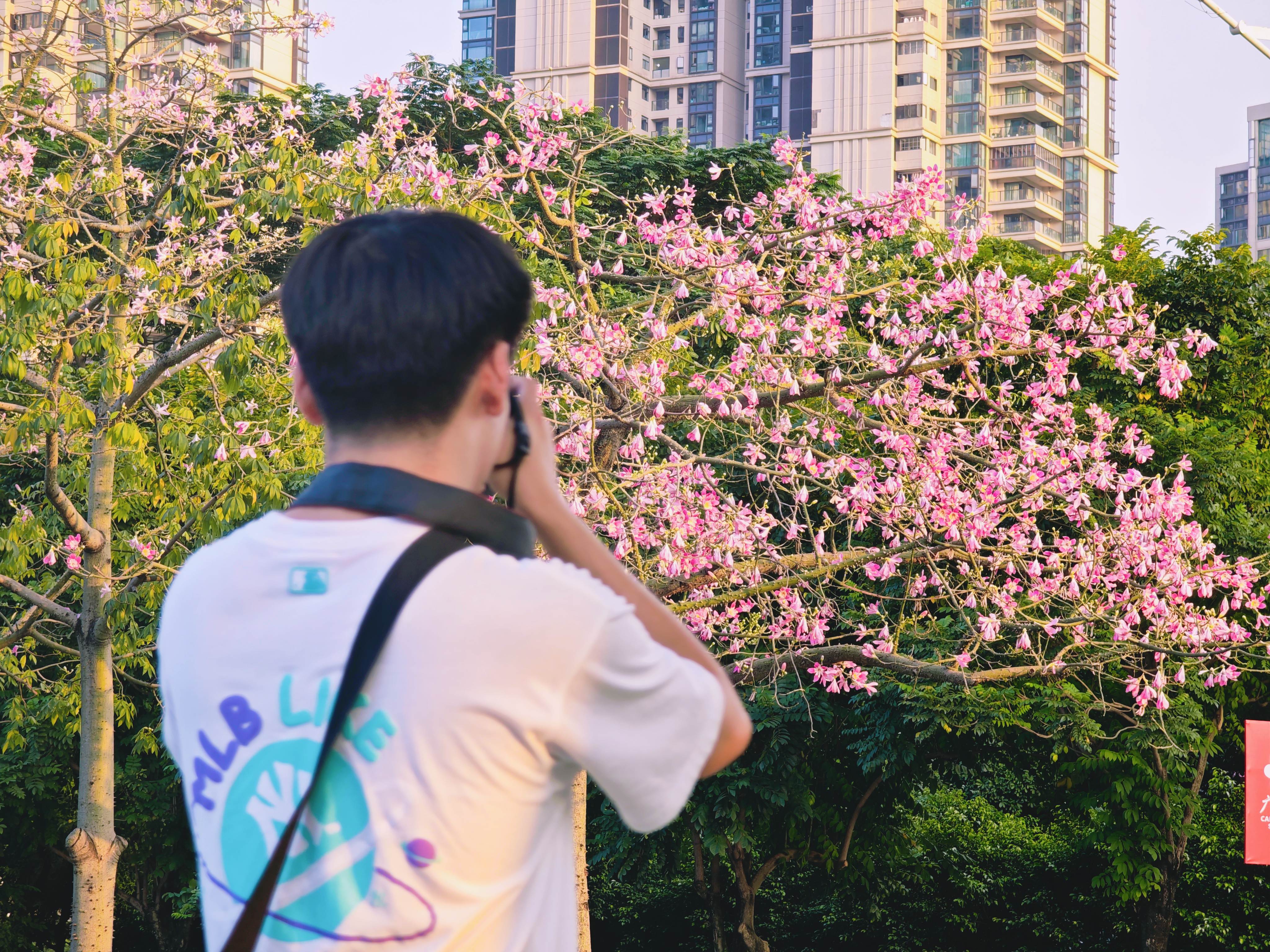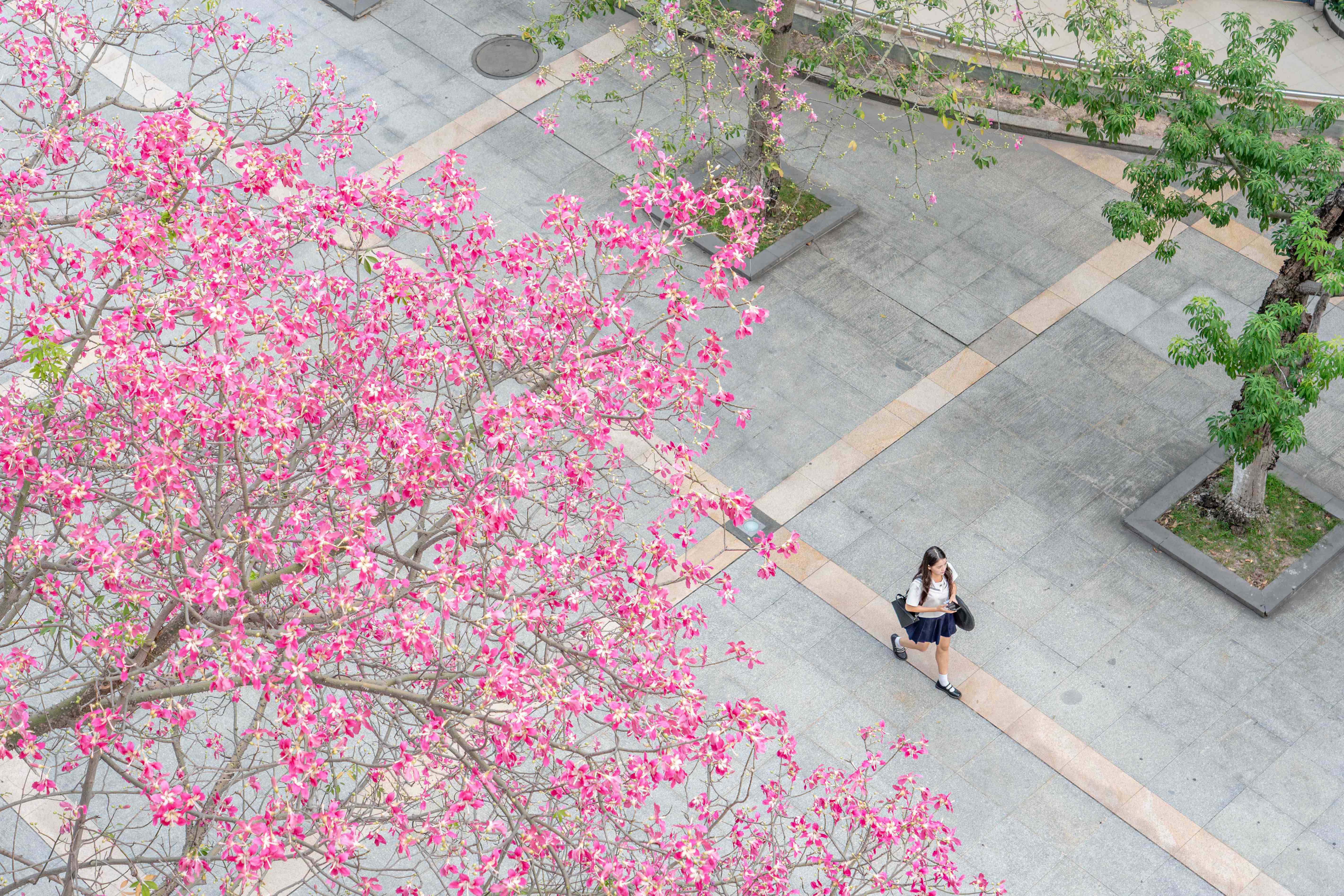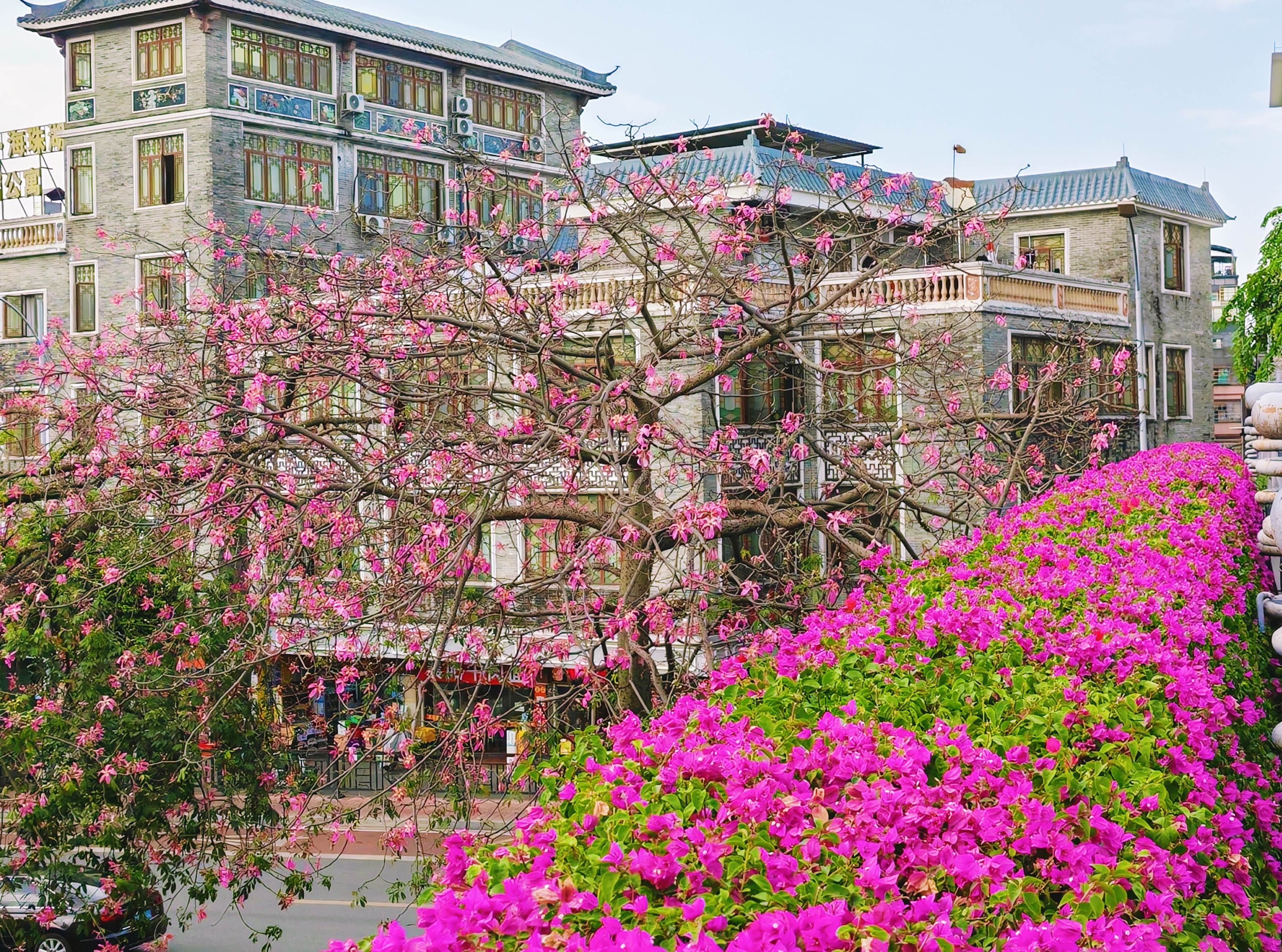 The silk floss trees' pink flowers hang from the branches and decorate the streets and alleyways, adding radiance to the cityscape and attracting many citizens and tourists to take photos.