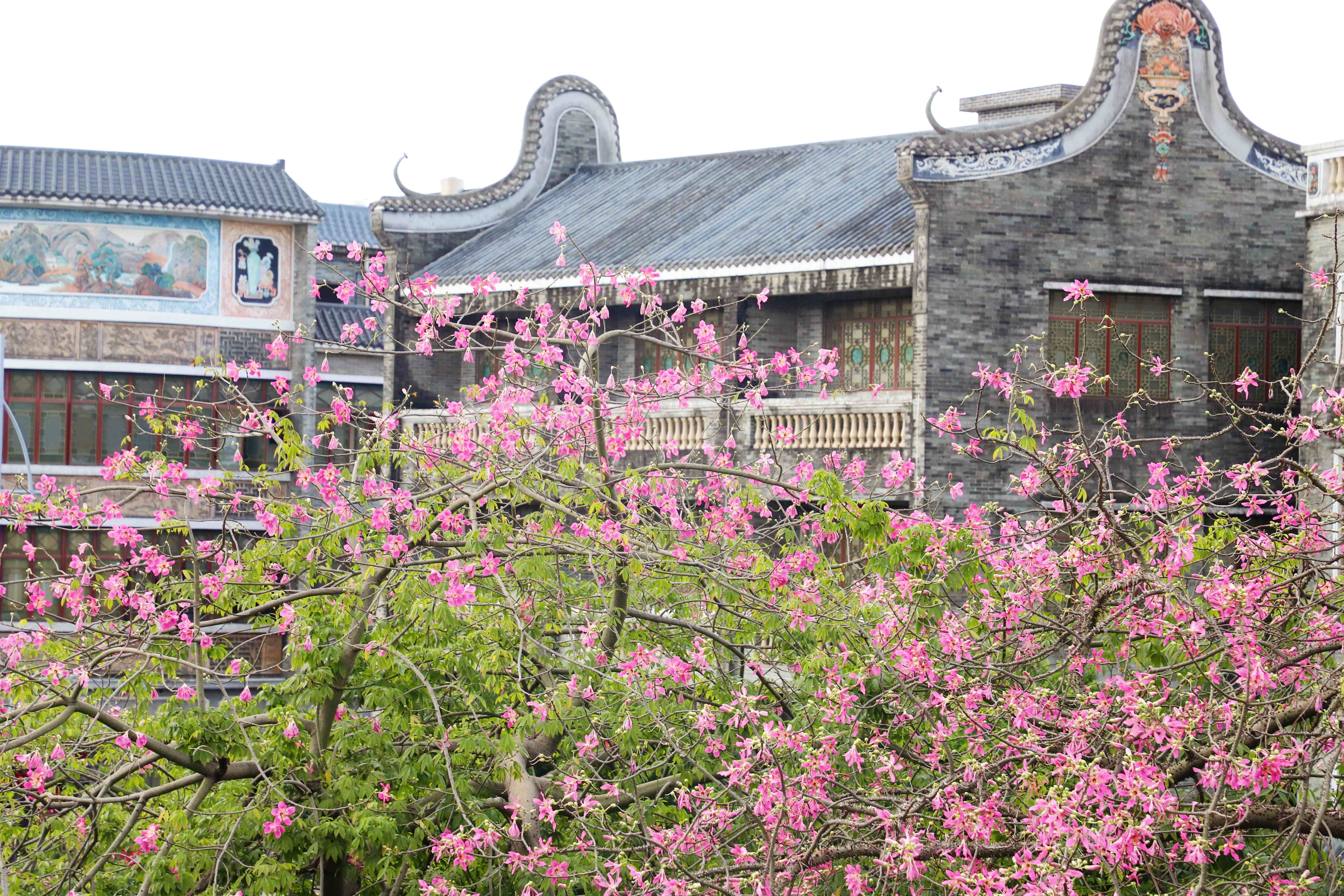 The blooming silk floss trees decorate traditional architecture with elegant charm in Guangzhou city, south China's Guangdong Province. (People's Daily Online/Piao Xinyu)