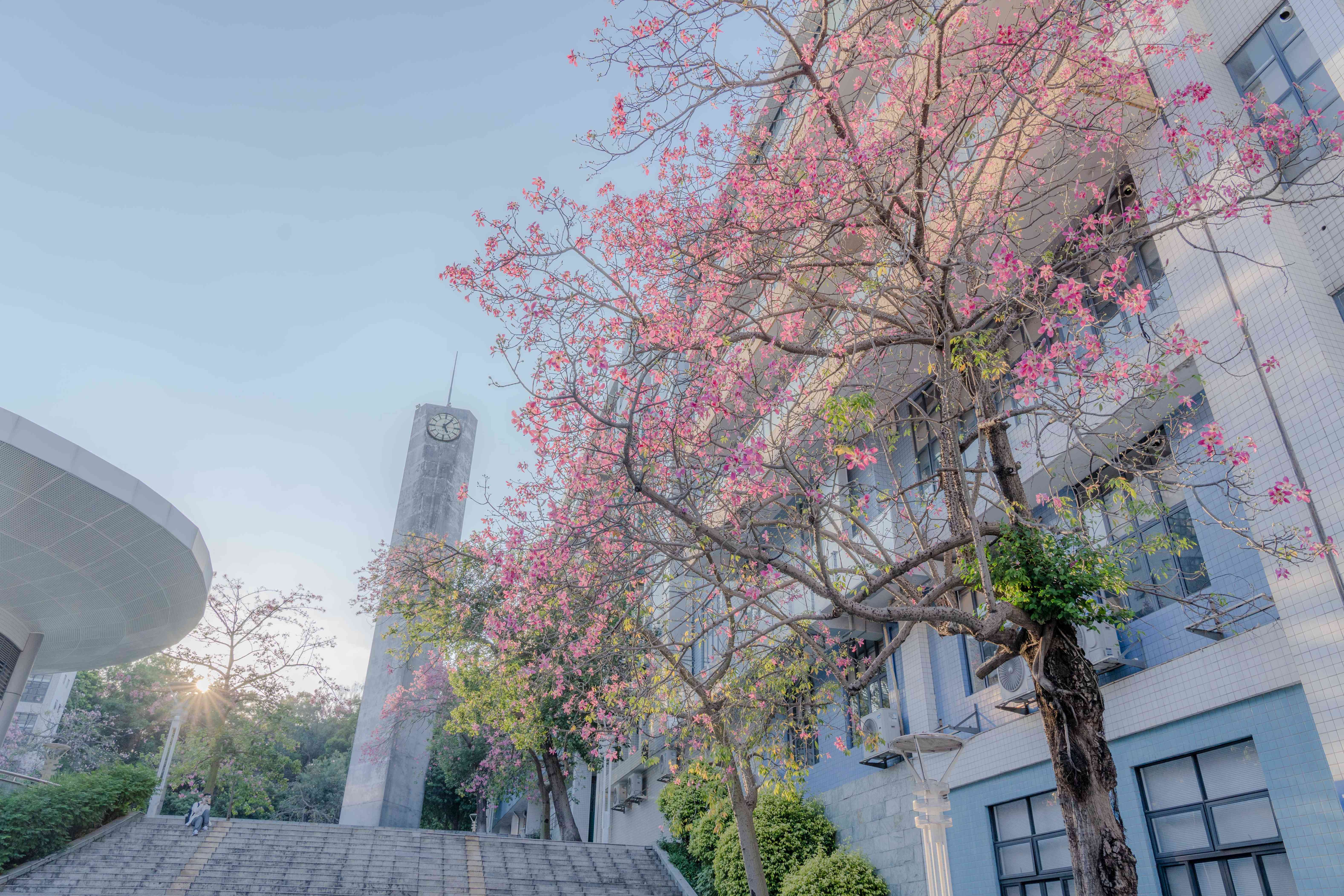 On campus, the silk floss trees look especially fresh and attractive under the sunlight in Guangzhou city, south China's Guangdong Province. (Photo/South China Agricultural University)