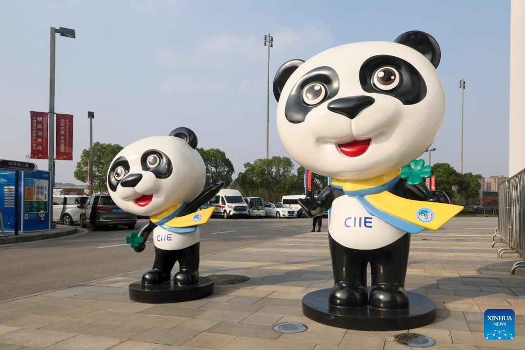 This photo shows Jinbao, the mascot of the China International Import Expo (CIIE), at the National Exhibition and Convention Center (Shanghai), the main venue for the 7th CIIE, in east China's Shanghai, Nov. 4, 2024. The 7th CIIE will be held in Shanghai from Nov. 5 to 10. (Xinhua/Wang Xiang)
