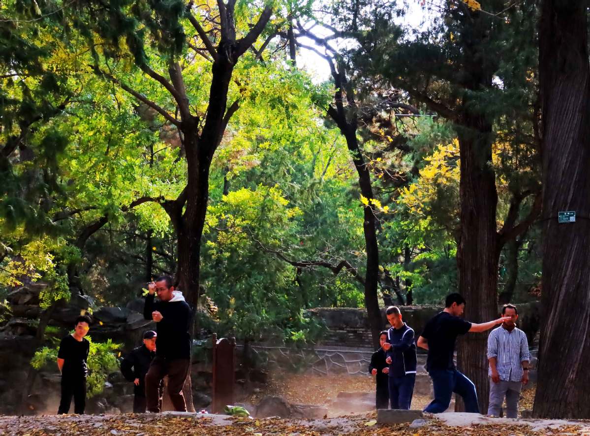 People engage in morning exercises on a hill at the back of the Summer Palace in Beijing, capital of China, Nov 3, 2024. (Photo by Jiang Dong/chinadaily.com.cn)