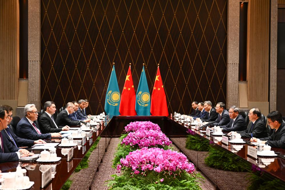 China stands ready to coordinate closely with Kazakhstan within multilateral frameworks such as the United Nations, the Shanghai Cooperation Organization (SCO) and the China-Central Asia mechanism, actively implement the three global initiatives, practice genuine multilateralism, safeguard economic globalization and free trade, and promote the development of global governance toward a more just and equitable direction, Li said.