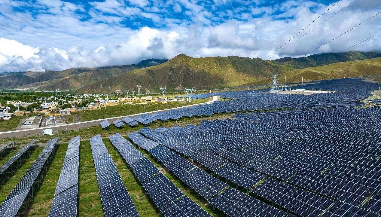 Photo shows a solar farm in Qonggyai county, Shannan city, southwest China's Xizang autonomous region. (People's Daily Online/Yang Dong)