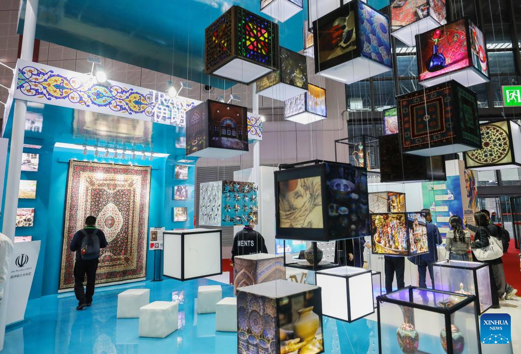 People visit the Iran Pavilion during the seventh China International Import Expo (CIIE) in east China's Shanghai, Nov. 5, 2024. The newest edition of the CIIE, the world's first national-level exposition dedicated to imports, opened on Tuesday in Shanghai. (Xinhua/Du Xiaoyi)