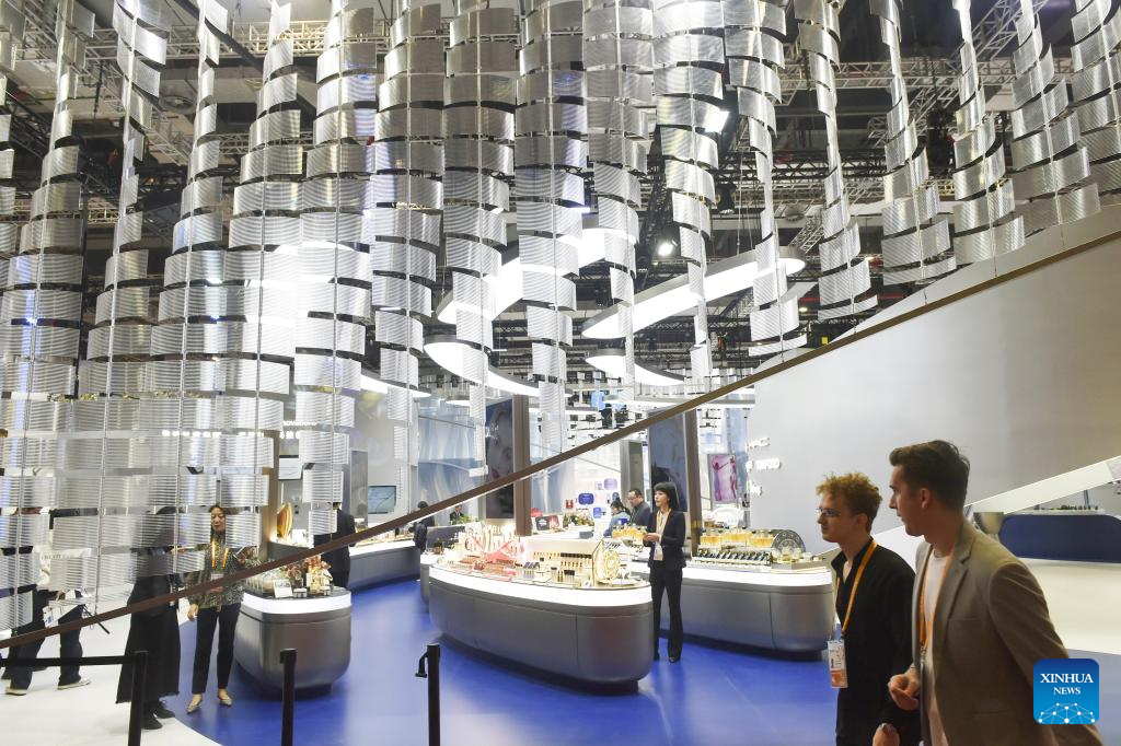 People visit the exhibition area of Consumer Goods during the seventh China International Import Expo (CIIE) in east China's Shanghai, Nov. 5, 2024. The newest edition of the CIIE, the world's first national-level exposition dedicated to imports, opened on Tuesday in Shanghai. (Xinhua/Lu Peng)