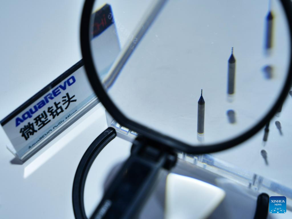 This photo taken on Nov. 5, 2024 shows a micro drill bit on display at the booth of Nachi-Fujikoshi Corp. during the seventh China International Import Expo (CIIE) in east China's Shanghai, Nov. 5, 2024. The newest edition of the CIIE, the world's first national-level exposition dedicated to imports, opened on Tuesday in Shanghai. (Xinhua/Wang Yiliang)