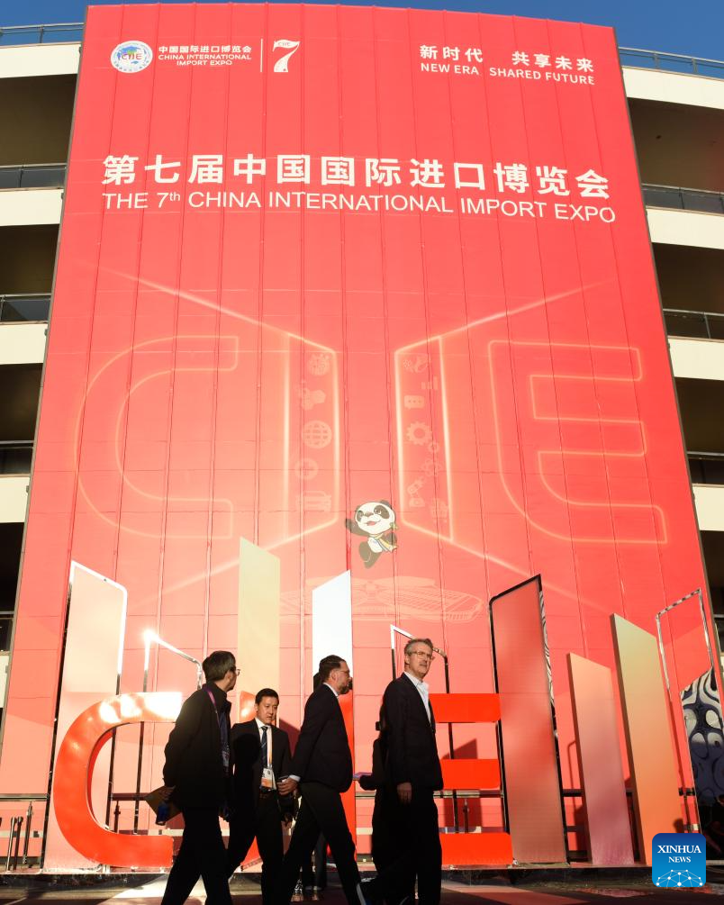 People visit the seventh China International Import Expo (CIIE) at the National Exhibition and Convention Center (Shanghai) in east China's Shanghai, Nov. 5, 2024. The newest edition of the CIIE, the world's first national-level exposition dedicated to imports, opened on Tuesday in Shanghai. (Xinhua/Xu Liang)