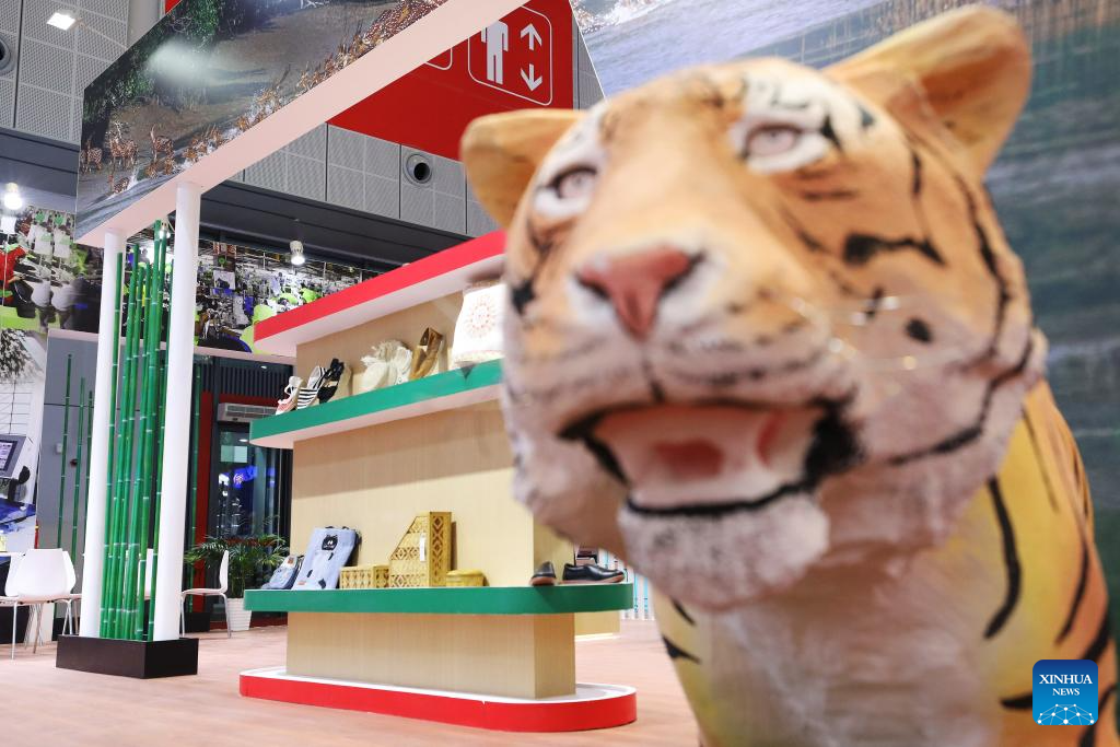 This photo taken on Nov. 5, 2024 shows the Bangladesh Pavilion during the seventh China International Import Expo (CIIE) in east China's Shanghai. The newest edition of the CIIE, the world's first national-level exposition dedicated to imports, opened on Tuesday in Shanghai. (Xinhua/Du Xiaoyi)