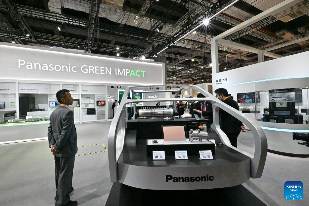 People visit the exhibition area of Panasonic during the seventh China International Import Expo (CIIE) in east China's Shanghai, Nov. 5, 2024. The newest edition of the CIIE, the world's first national-level exposition dedicated to imports, opened on Tuesday in Shanghai. (Xinhua/Xin Yuewei)