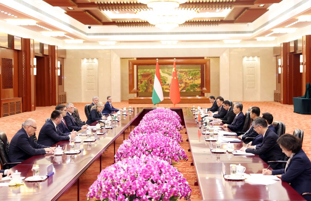 The Chinese side is willing to promote a deep synergy of the Belt and Road Initiative (BRI) with Hungary's "Opening to the East" policy, accelerate the construction of the Hungary-Serbia railway, and expand cooperation in emerging areas such as clean energy, digital economy, and artificial intelligence, to comprehensively elevate the level of cooperation, said Zhao.