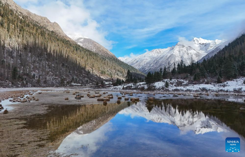 This photo taken on Nov. 4, 2024 shows the scenery of Duopugou scenic spot in Dege County of Garze Tibetan Autonomous Prefecture, southwest China's Sichuan Province. The Duopugou scenic spot boasts a picturesque scenery and abundant reserve of animals and plants. (Xinhua/Wang Xi)