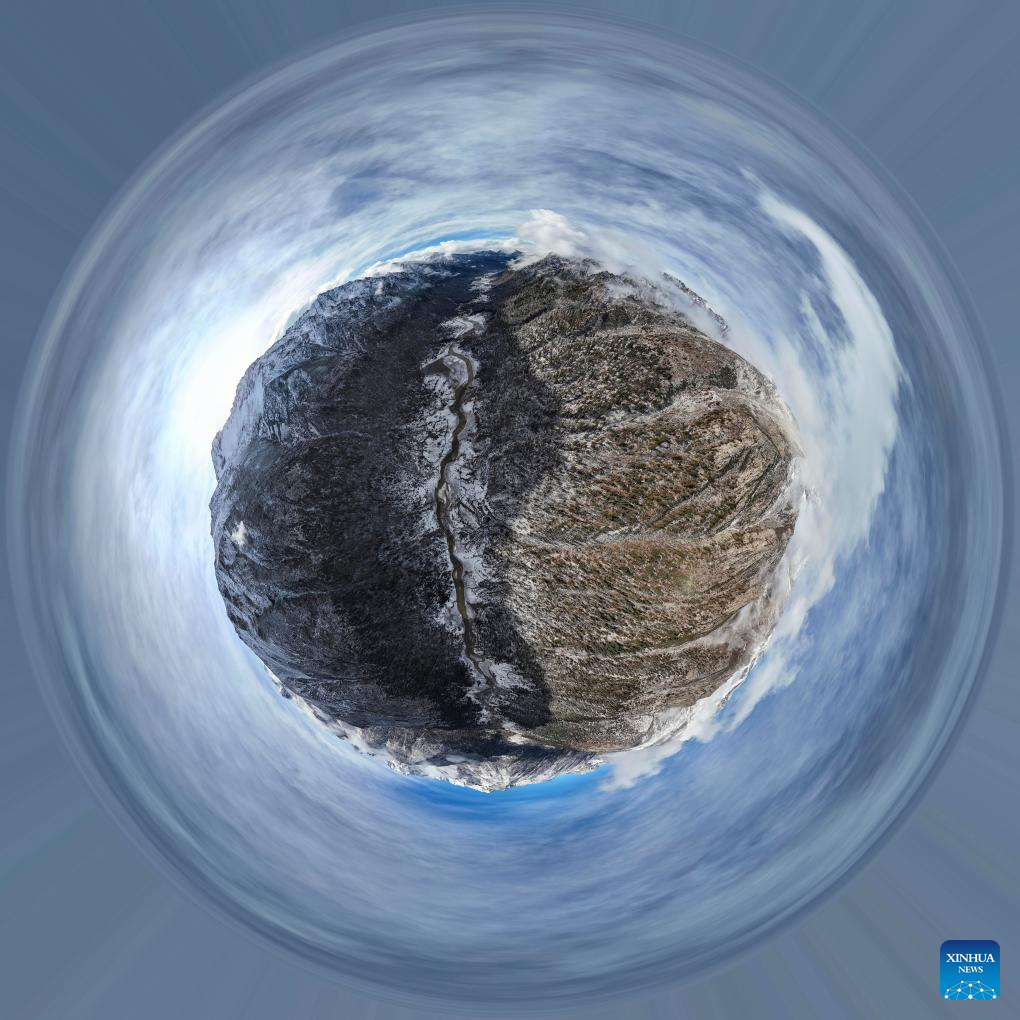 A panoramic drone photo taken on Nov. 4, 2024 shows the scenery of Duopugou scenic spot in Dege County of Garze Tibetan Autonomous Prefecture, southwest China's Sichuan Province. The Duopugou scenic spot boasts a picturesque scenery and abundant reserve of animals and plants. (Xinhua/Wang Xi)