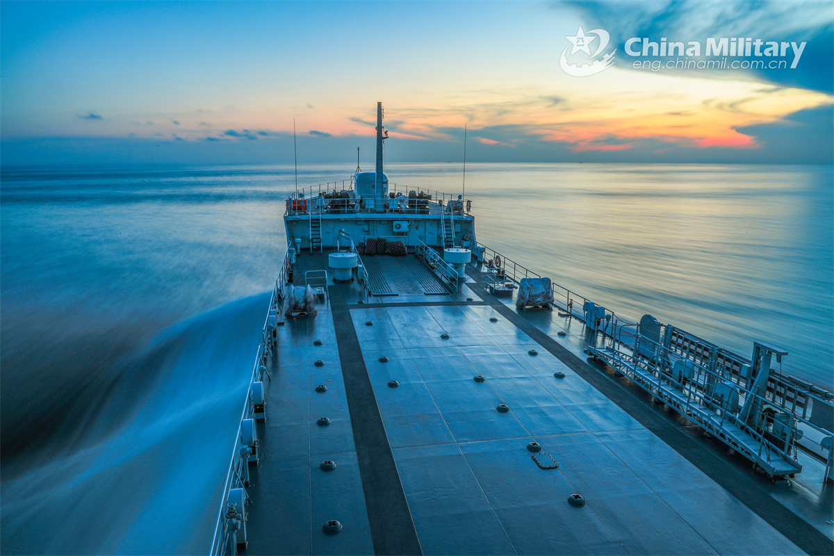 A naval fleet consisting of landing ships Hengshan and Taishan attached to a Chinese PLA Navy's flotilla sails towards the designated waters during a maritime exercise in the South China Sea on September 11, 2024. (eng.chinamil.com.cn/Photo by Wang Wenbin)