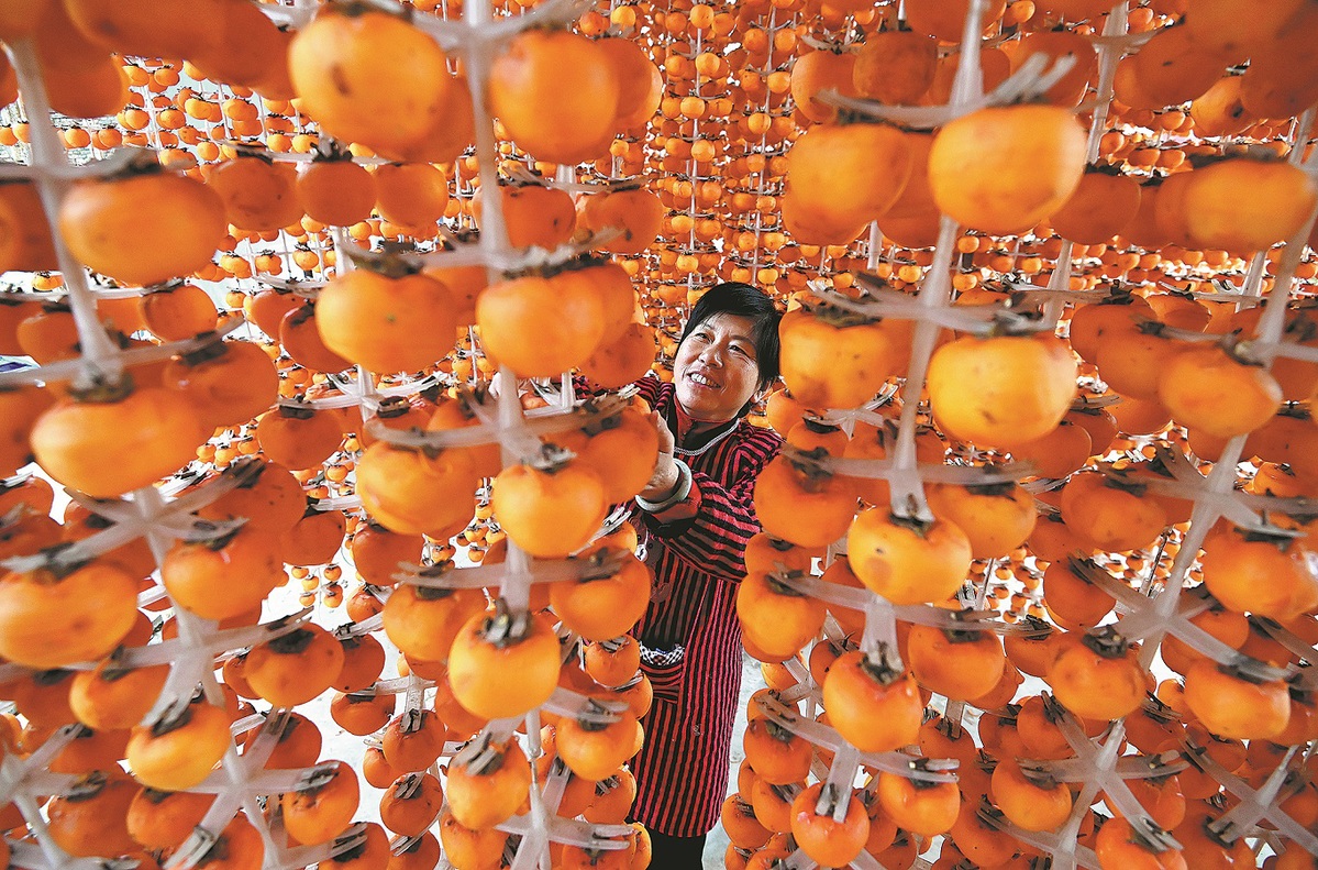 A farmer dries persimmons in Handan, Hebei province, on Oct 28. (HAO QUNYING/XINHUA)