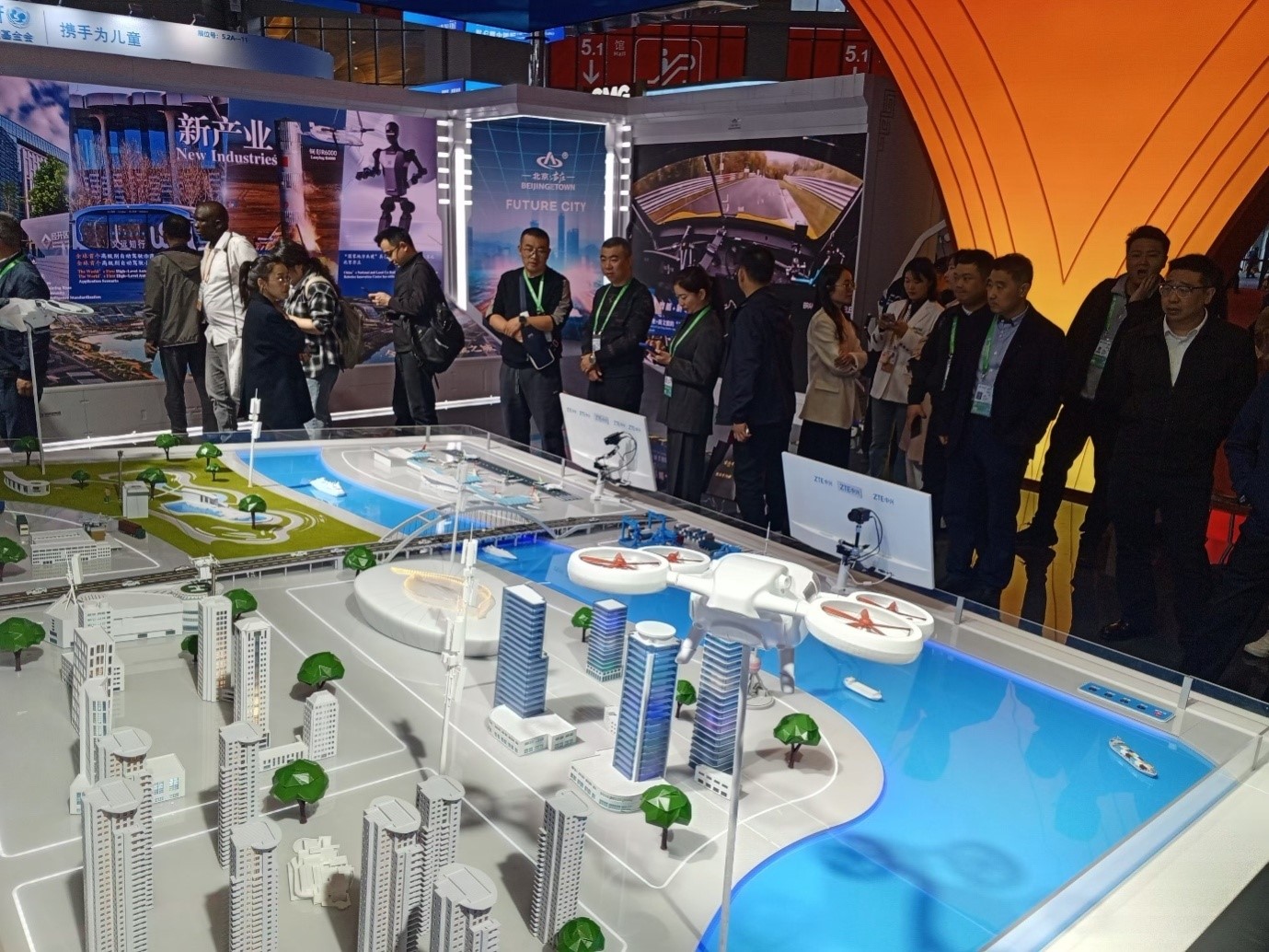 Attendees stand astonished in front of a huge model that presents a future Chinese residential project in the Chinese national pavilion at the 7th China International Import Expo (CIIE) on Nov. 6, 2024, east China's Shanghai. (People's Daily Online/Kostas Papathanasiou)