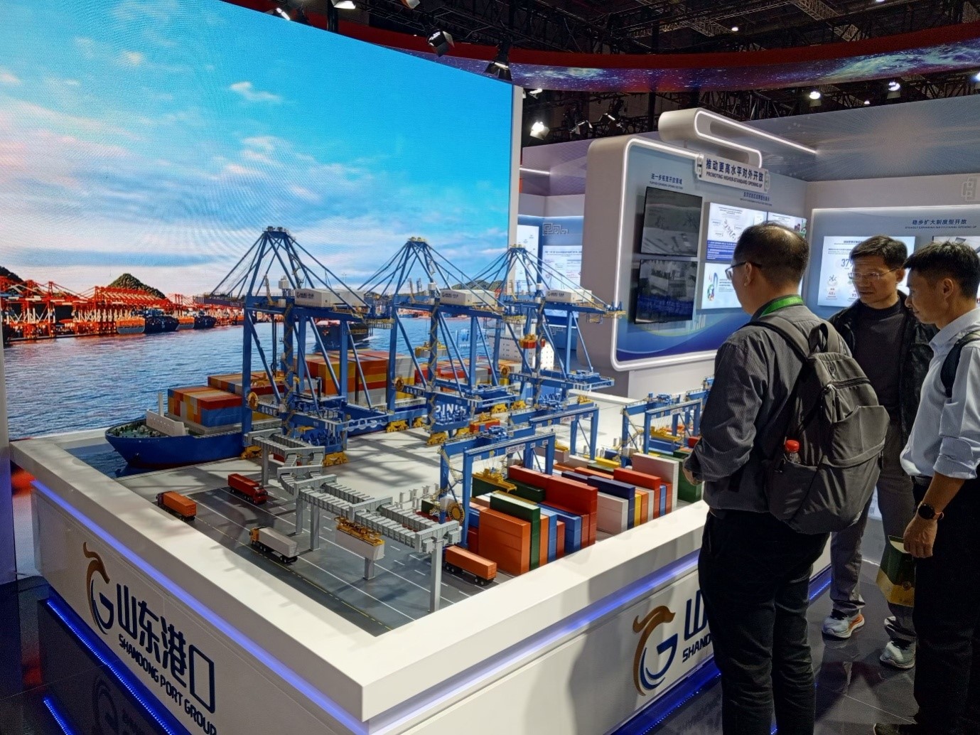 A very detailed 3D printed model shows a port and the developed automations applied there in the Chinese national pavilion at the 7th China International Import Expo (CIIE) on Nov. 6, 2024, east China's Shanghai. (People's Daily Online/Kostas Papathanasiou)