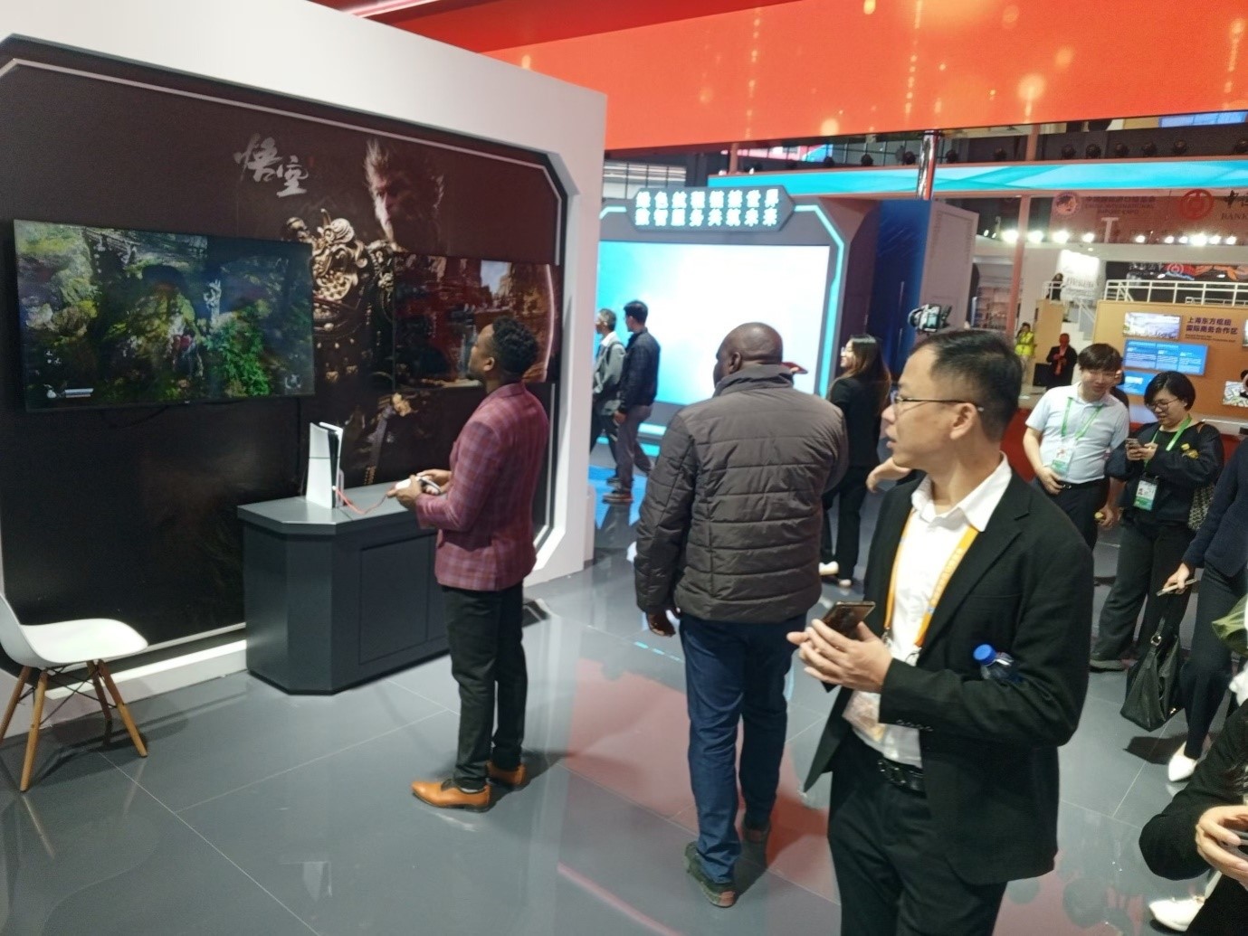 A foreign attendee plays the videogame "Black Myth: Wukong" in the Chinese national pavilion at the 7th China International Import Expo (CIIE) on Nov. 6, 2024, east China's Shanghai. (People's Daily Online/Kostas Papathanasiou)