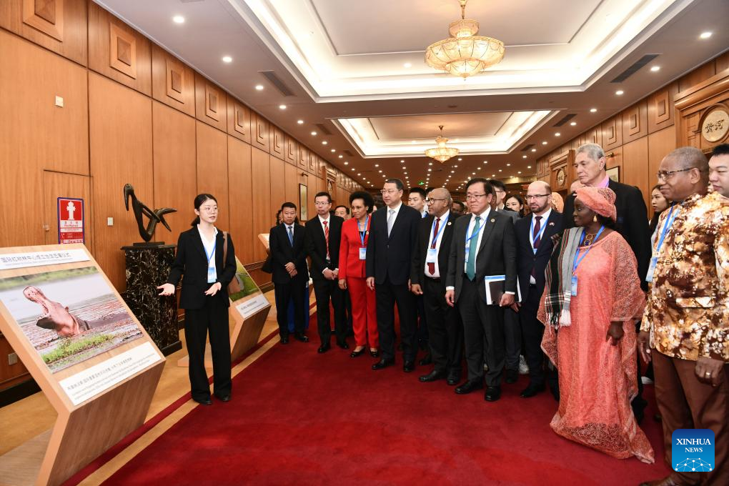 Guests view photos of mangrove wetland in Shenzhen, south China's Guangdong Province, Nov. 6, 2024. (Xinhua/Liang Xu)