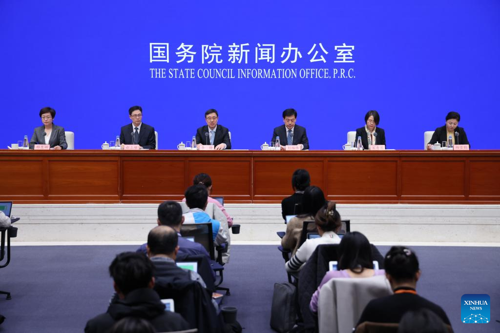 A briefing on policy measures for stimulating the vitality of the ice and snow economy through the high-quality development of winter sports is held by the State Council Information Office in Beijing, capital of China, Nov. 6, 2024. (Xinhua/Jin Liwang)
