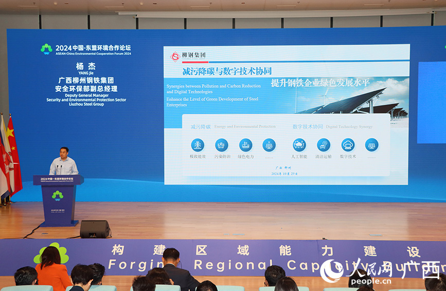 During a special session on coordinated digital and green development, leaders and experts from departments such as the Ecology and Environment Department of Guangxi, the China-ASEAN Environmental Cooperation Center, and the People's Government of Liuzhou Municipality, as well as Liuzhou Steel Group, delivered speeches. They exchanged ideas on coordinated digital and green applications and development trends, and introduced strategic plans and key policies countries in the region are implementing.