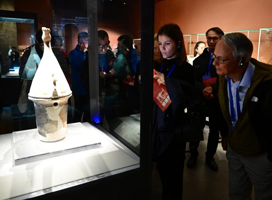 BEIJING, Nov. 7 (Xinhua) -- At an exhibition on the origins of Chinese civilization held in the Chinese Archaeological Museum in Beijing, Konstantinos Buraselis from Greece listened very intently to the guide. He frequently paused to appreciate the artifacts on display and often joined in discussions with other visitors.