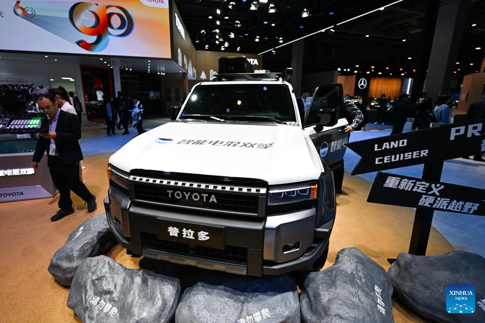 A Toyota Land Cruiser is on display at the Automobile Exhibition Area during the seventh China International Import Expo (CIIE) in east China's Shanghai, Nov. 7, 2024. The Automobile Exhibition Area, with the theme of "Unlimited Mobility Possibilities in the Future," serves as a platform for showcasing high-end technology and debuting new automotive products. (Xinhua/Xin Yuewei)