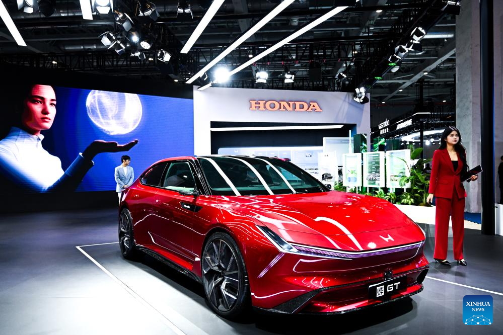 A Honda Ye GT vehicle is on display at the Automobile Exhibition Area during the seventh China International Import Expo (CIIE) in east China's Shanghai, Nov. 7, 2024. The Automobile Exhibition Area, with the theme of "Unlimited Mobility Possibilities in the Future," serves as a platform for showcasing high-end technology and debuting new automotive products. (Xinhua/Xin Yuewei)