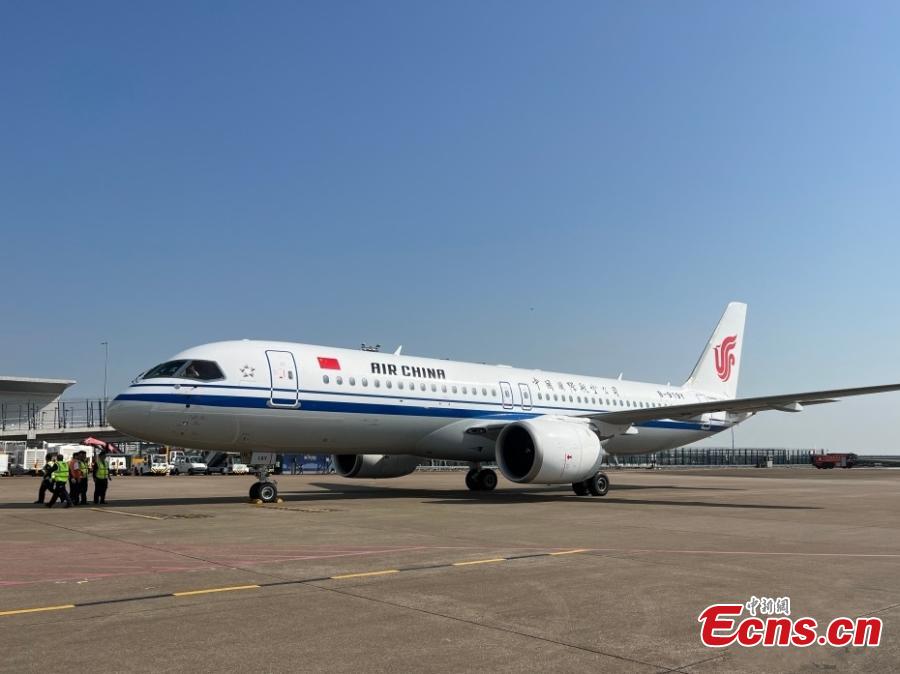 Air China's B-919Y aircraft completed a flight to Macao on Thursday, marking the first visit of China's C919 jetliner.