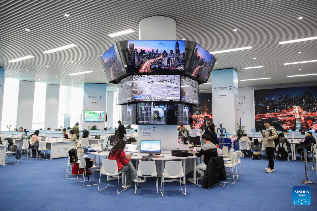 The media center for the 7th CIIE held various events on Friday to mark China's annual Journalists' Day, which falls on Nov. 8. (Xinhua/Wang Xiang)