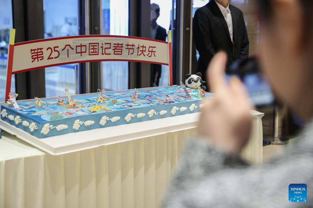 The media center for the 7th CIIE held various events on Friday to mark China's annual Journalists' Day, which falls on Nov. 8. (Photo by Chen Haoming/Xinhua)