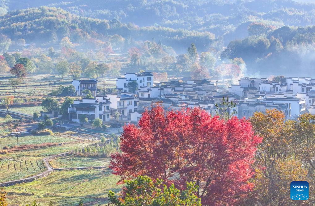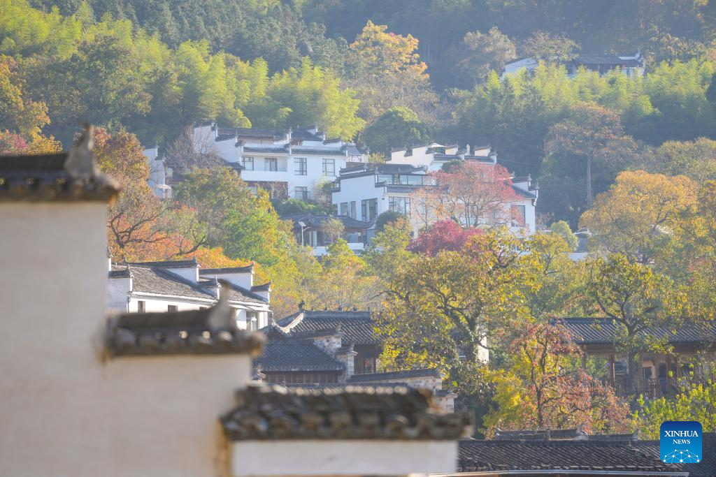 This photo shows a view of a scenic spot at Tachuan Village, Yixian County, Huangshan City, east China's Anhui Province, Nov. 8, 2024. (Xinhua/Chen Yehua)