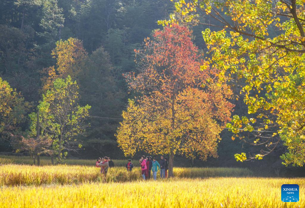 Tourists visit a scenic spot at Tachuan Village, Yixian County, Huangshan City, east China's Anhui Province, Nov. 8, 2024. (Xinhua/Chen Yehua)