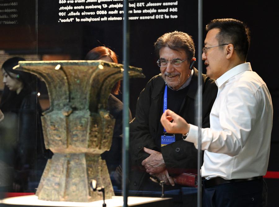 Guests visit an exhibition titled "Origins of Chinese Civilization from an Archaeological Perspective" at the Chinese Archaeological Museum in Beijing, capital of China, Nov. 6, 2024. (Xinhua/Li He)