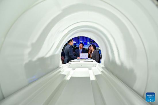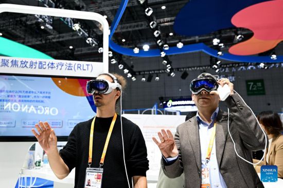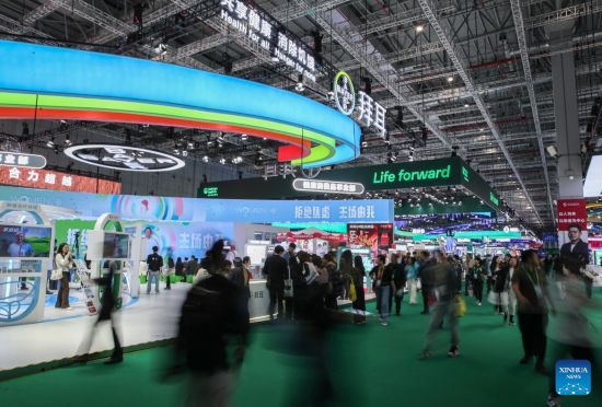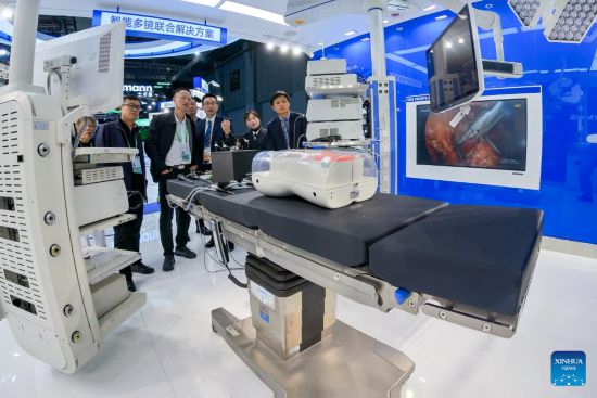 People visit the Medical Equipment &Healthcare Products Exhibition Area during the 7th China International Import Expo (CIIE) in east China's Shanghai, Nov. 8, 2024. With the theme of "Healthy China, Better Life," the Medical Equipment &Healthcare Products Exhibition Area during the 7th CIIE presented international leading medical innovation products and cutting-edge technologies and services. (Xinhua/Zhang Cheng)