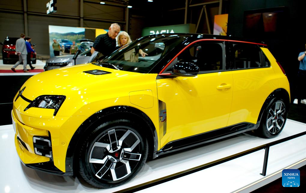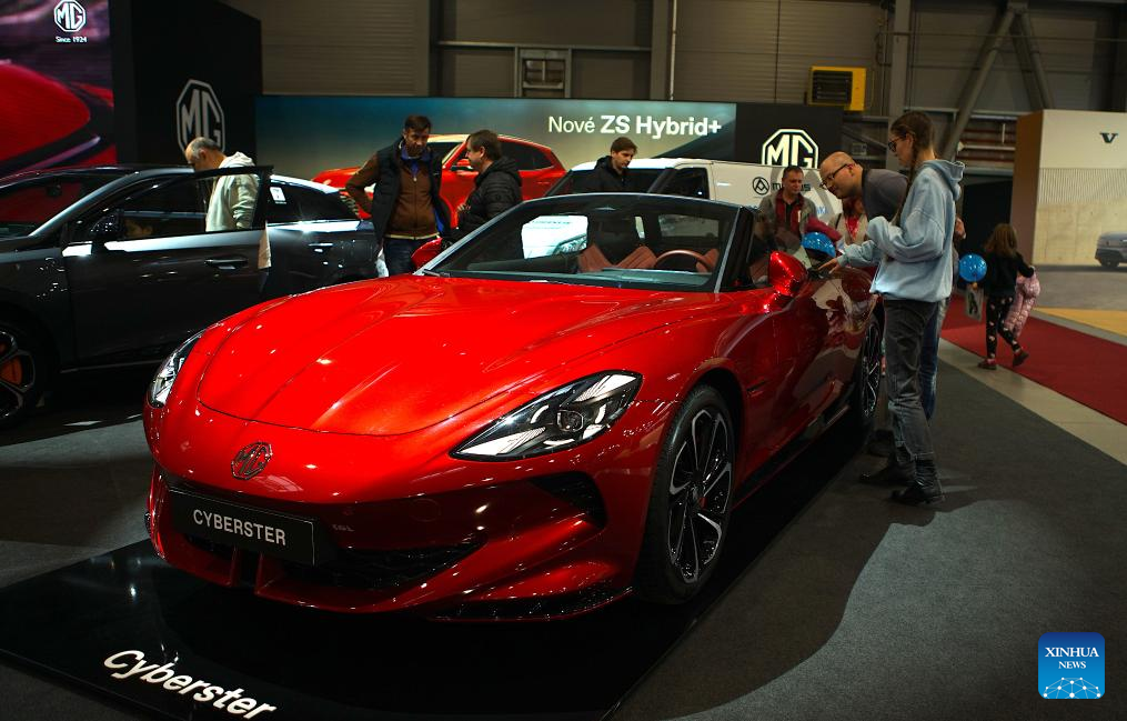 Visitors view an electric vehicle at the e-SALON in Prague, the Czech Republic, on Nov. 8, 2024. The 6th edition of the e-SALON, a trade fair of clean mobility, technologies and e-mobility solutions, is held here from Nov. 7 to Nov. 10. (Photo by Dana Kesnerova/Xinhua)