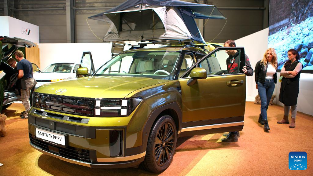Visitors view a vehicle with a camping body at the e-SALON in Prague, the Czech Republic, on Nov. 8, 2024. The 6th edition of the e-SALON, a trade fair of clean mobility, technologies and e-mobility solutions, is held here from Nov. 7 to Nov. 10. (Photo by Dana Kesnerova/Xinhua)