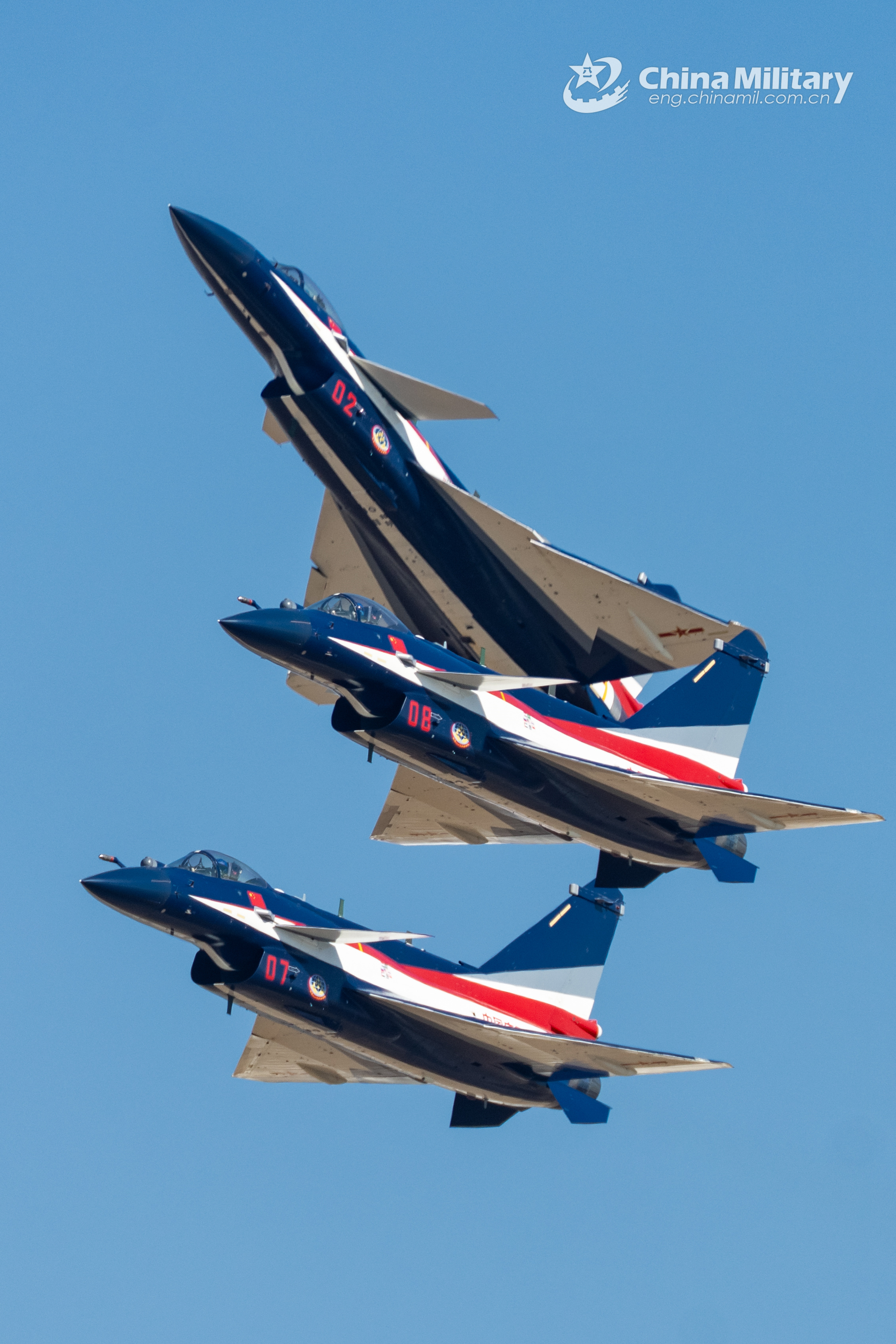 The Bayi Acrobatic Team of the Chinese People's Liberation Army (PLA) Air Force conducts its first adaptive training on November 8, in preparation for the upcoming 15th China International Aviation and Aerospace Exhibition, Airshow China 2024, which is scheduled to be held from November 12th to 17th, 2024. (eng.chinamil.com.cn/Photo by Sun Yue)