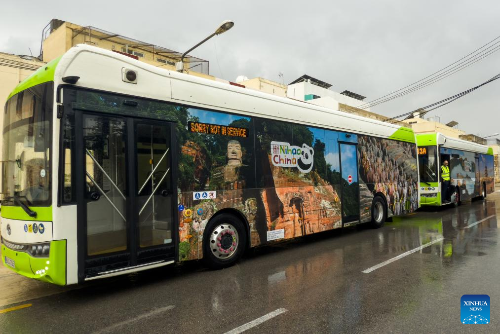 VALLETTA, Nov. 9 (Xinhua) -- Three Chinese-made electric buses, each adorned with vibrant images of iconic Chinese landscapes and cultural heritage sites, began operating across Malta on Saturday.